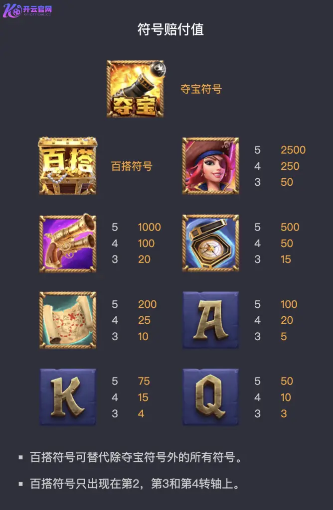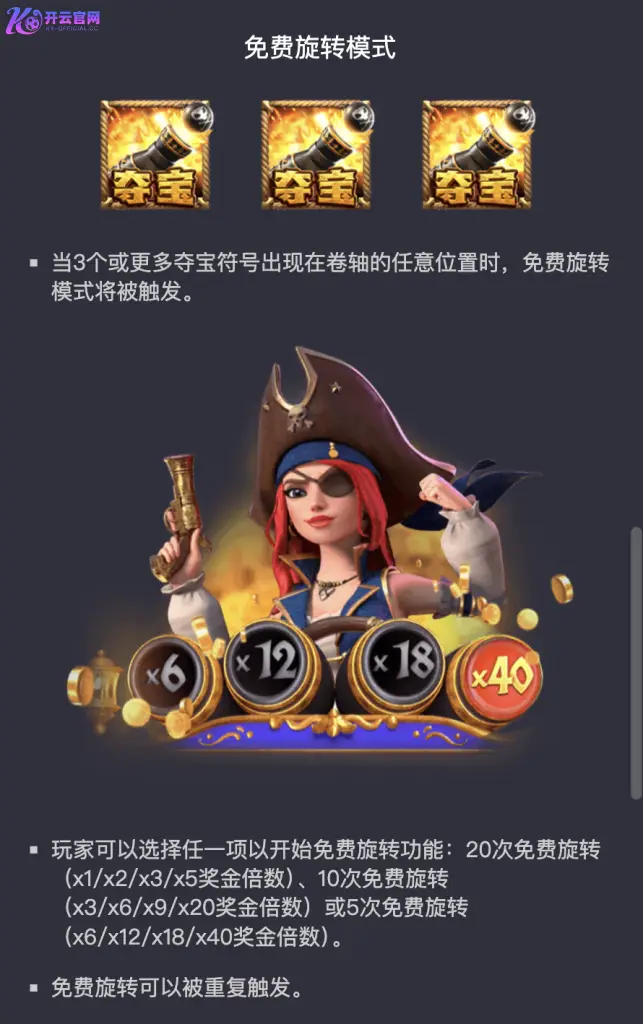 《赏金女王》是一款由开云官网独家上线的 5 轴 3 行视频老虎机游戏,具备符号消除功能、递增式奖金倍数以及多种免费旋转模式。玩家将在航海冒险中体验连环爆奖的快感,收获无尽惊喜。